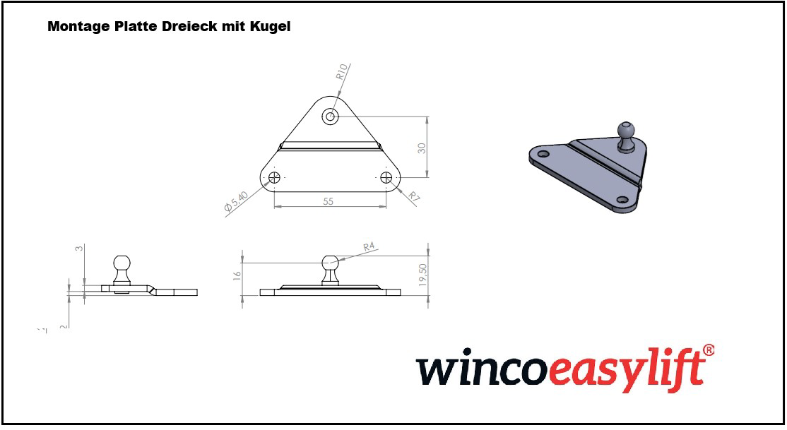 Driehoek met kogel 10 t.b.v. kogelverbindingen
